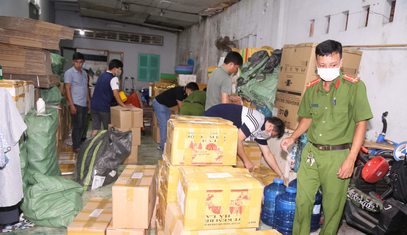 Qua kiểm tra, lực lượng chức năng phát hiện trên xe 3 túi nilon, 2 thùng giấy chứa nhiều sản phẩm là thuốc, thức ăn, sản phẩm xử lý dùng trong nuôi trồng thủy sản không rõ nguồn gốc xuất xứ. Nghi vấn là hàng giả nên cơ quan Công an tiến hành tạm giữ các hàng hóa trên.