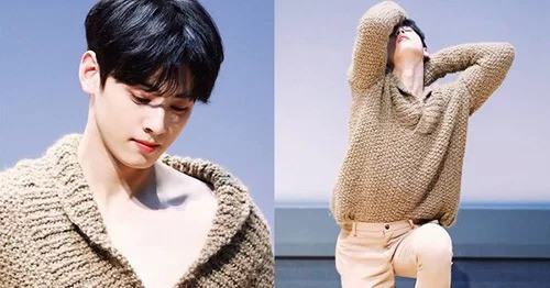 Trong buổi fansign gần đây, chiếc áo len lệch vai khiến Cha Eun Woo (Astro) trở nên nữ tính hóa quá đà.