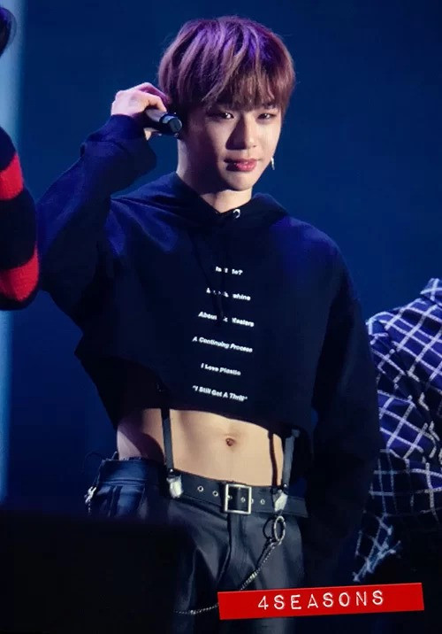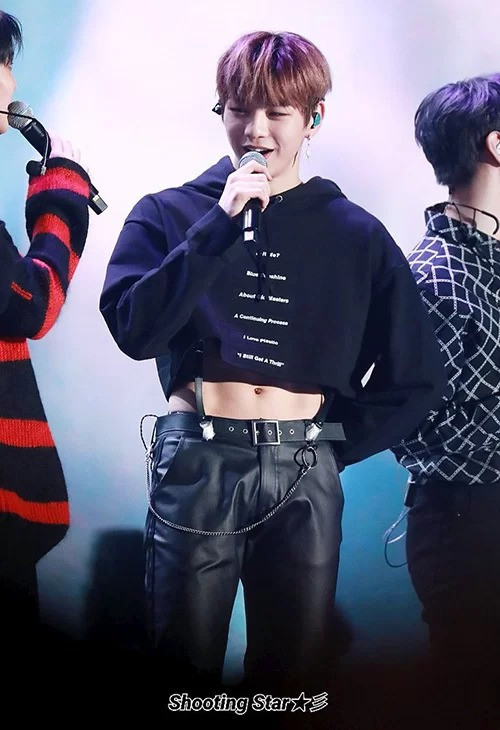 Trong concert trước đây của Wanna One, trang phục của Kang Daniel đã khiến các fan không biết nên vui hay buồn. Anh chàng mặc crop top, để lộ cơ bụng 6 múi săn chắc nhưng lại làm Daniel nhìn nữ tính đi nhiều. Những chiếc áo lửng khoe eo không còn là đặc quyền của con gái bởi idol nam mặc áo ngày càng ngắn hơn.