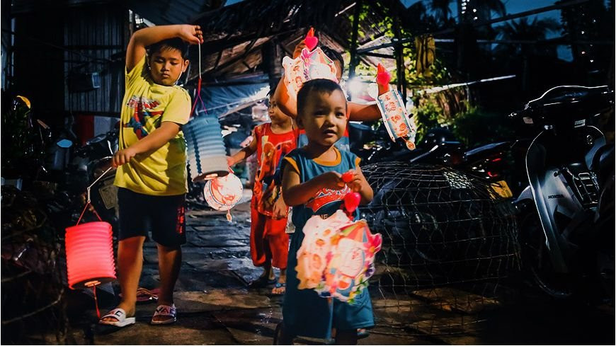 Với các em thiếu nhi, ngày Trung thu bây giờ cũng như ngày lễ hay những ngày cuối tuần khác, ngồi trên xe được bố mẹ chở đi dạo phố, tuy náo nhiệt nhưng kẹt xe và đầy khói bụi. Các em không được ngắm trăng mà thay vào đó là những tòa nhà cao tầng nằm san sát.