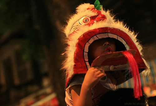 Trung thu không chỉ có rước đèn, phá cỗ, mà trong ký ức ngày bé, Trung thu còn là dịp thứ hai trong năm được xem múa lân. Tiếng cười đùa, hòa cùng nhịp trống tạo nên âm thanh đặc trưng mà chỉ có bọn con nít trong xóm mới làm được.