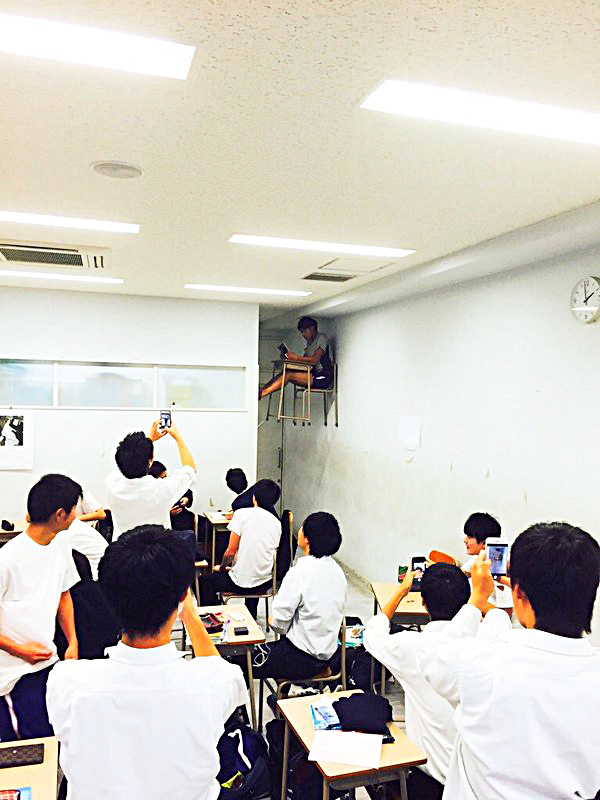 Những bức ảnh này được chia sẻ từ tháng 10 năm 2015, mọi chuyện tưởng như đã chìm xuống, nhưng khi được một trang fanpage lớn chia sẻ lại, cậu bạn Nhật Bản kì cục này lại một lần nữa “gây bão” cộng đồng mạng. Nhiều người đã thắc mắc về trang phục của cậu bạn, về việc làm thế nào cậu chàng có thể leo xuống và thậm chí có phải là cậu bị cô giáo phạt hay không. “Nhìn cậu ấy gồng chân dùng sức để giữ bàn học kìa, mà làm sao có thể trèo lên trên ấy được nhỉ?”, FBer Hà Trang chia sẻ.