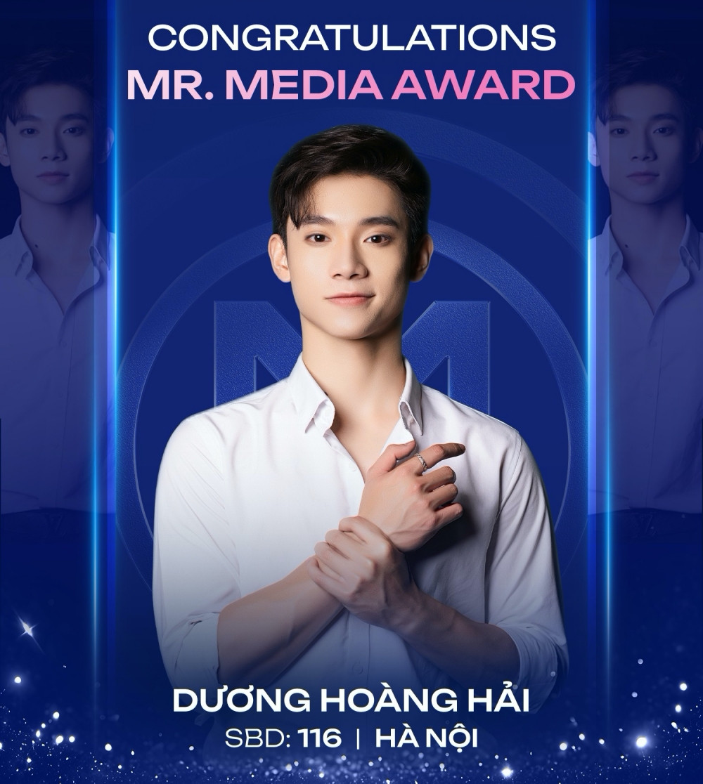 Top 5 Mr World Vietnam 2024 còn có cậu bạn hot boy Dương Hoàng Hải, Hoàng Hải cũng giành giải thưởng Mr Media Award, dành cho thí sinh nhận được bình chọn nhiều nhất từ khán giả và giải thưởng Top Model (do fan bình chọn).