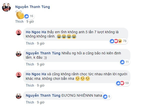 Dù không chỉ rõ đích danh đang nói về điều gì, thế nhưng cư dân mạng hoàn toàn có thể hiểu Hồ Ngọc Hà đang ám chỉ tới The Face năm nay khi người đẹp tiết lộ việc ban tổ chức chương trình đã "5 lần 7 lượt" gửi lời mời, nhưng bản thân nhất quyết từ chối: "Thấy em tỉnh không anh. 5 lần 7 lượt không là không. Không rảnh". Chưa hết, Hồ Ngọc Hà còn úp mở câu chuyện lùm xùm với Minh Hằng 1 năm về trước khi trả lời: "Và cũng không rảnh chọc tức nhau nhận lời người khác nha, không chơi bẩn nha".