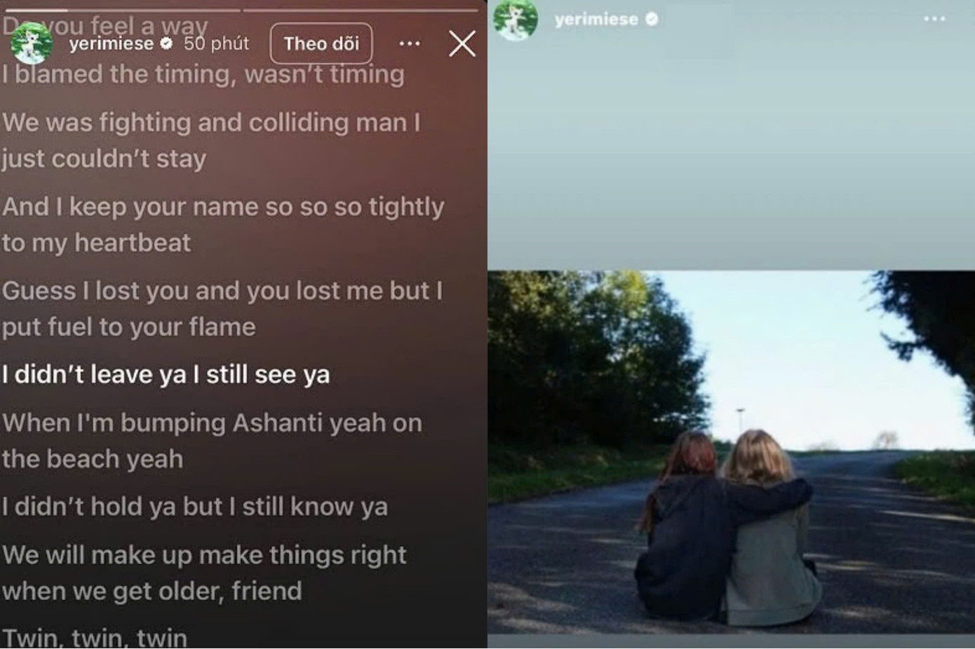 Ở story thứ hai, cô đăng ảnh chụp màn hình đang nghe twin của Jennie (BLACKPINK), một bản Ballad nói về nỗi buồn và mong được hàn gắn với một người bạn cũ. Nhiều cư dân mạng suy đoán Yeri đang nhớ về Sae Ron giữa lúc truyền thông đang bàn tán rôm rả về bạn thân mình và Kim Soo Hyun.