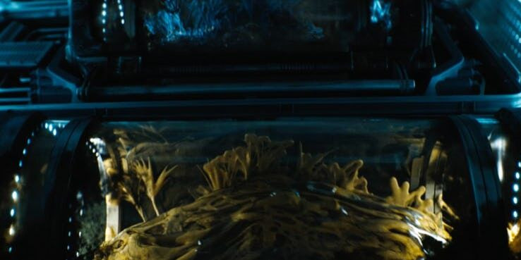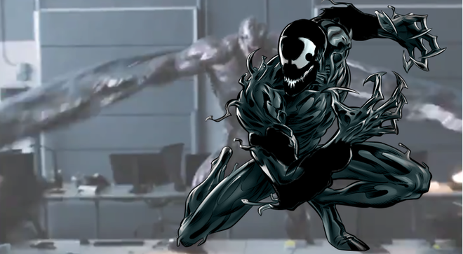 Symbiote màu xanh và vàng khá nổi bật này không giống bất cứ loại nào từng xuất hiện trong nguyên tác truyện tranh, rất có thể đây là Toxin. Và vật chủ được nó chọn là nạn nhân thí nghiệm do nam diễn viên Reid Scott vào vai.