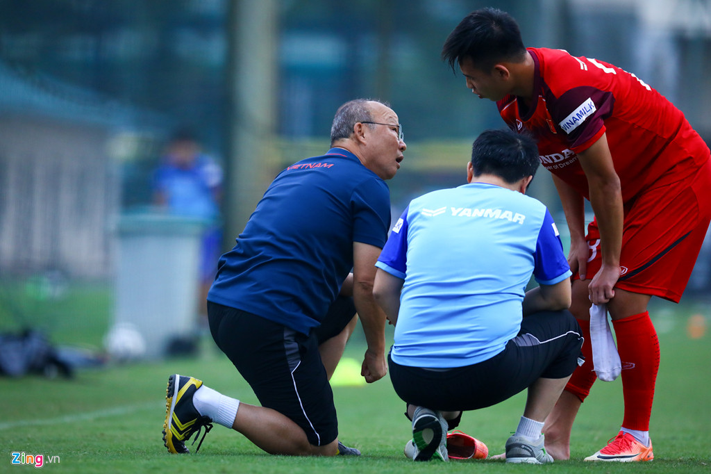 Khi buổi tập diễn ra được khoảng 15 phút, HLV Park Hang-seo phát hiện những bước chạy của tân binh Nguyễn Việt Phong có vấn đề. Ông lập tức yêu cầu anh này vào kiểm tra.