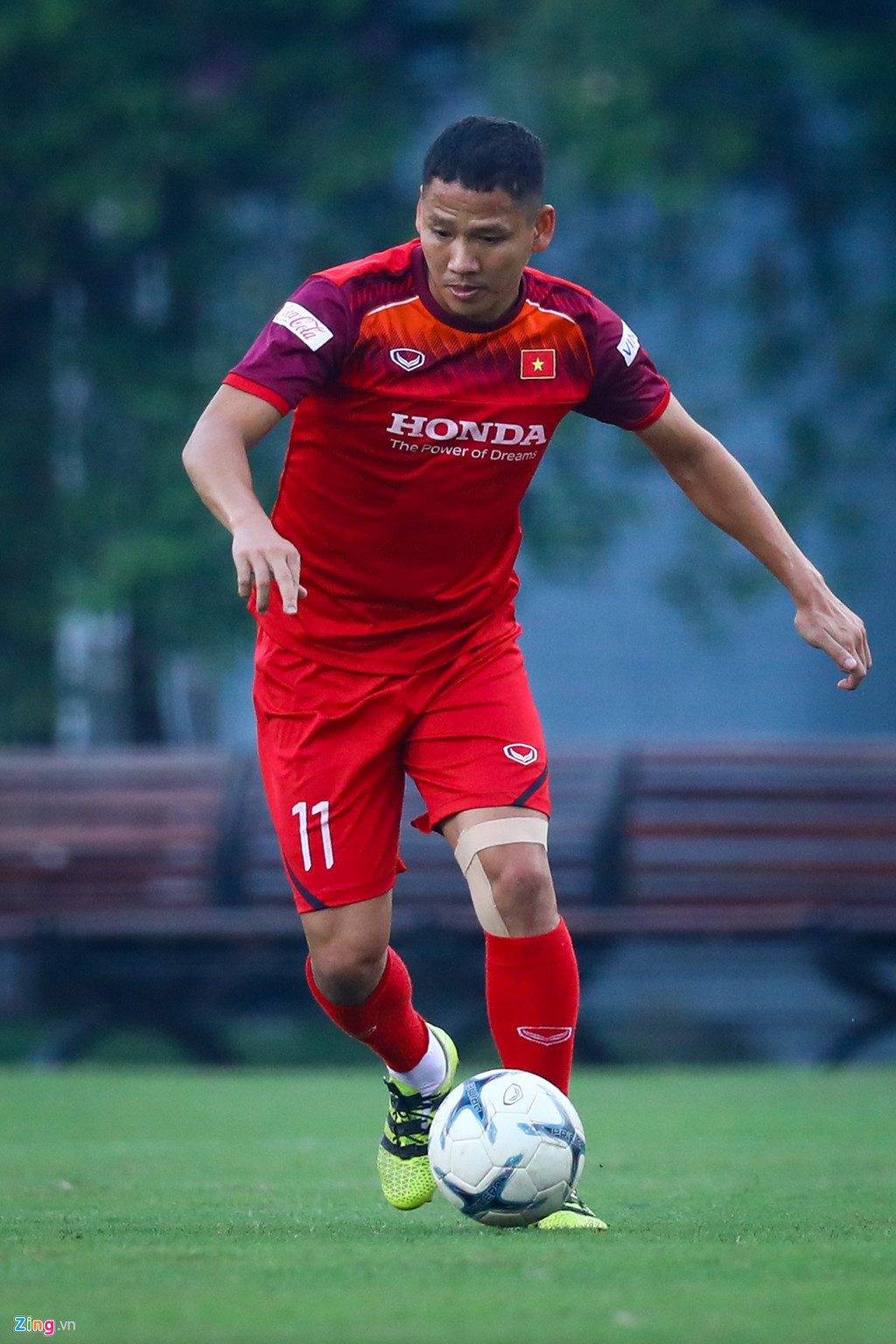 Lão tướng Nguyễn Anh Đức băng đầu gối trái. Dù vậy, anh vẫn sẽ là quân át chủ bài ở vị trí đá cắm của tuyển Việt Nam.