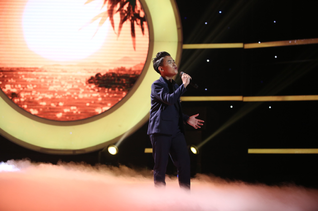 Trong khi đó, “anh cả” Thiên Phúc xuất hiện lịch lãm trong màn hóa thân thành ca sĩ Tùng Dương cùng ca khúc Quê Nhà. Xuất hiện trên sân khấu với bộ vest sang trọng, mái tóc vuốt ngược và đặc biệt là nốt ruồi trên má kết hợp cùng giọng hát ngọt ngào, Thiên Phúc khiến người nghe liên tưởng ngay đến giọng ca nam nhạc nhẹ hàng đầu Việt Nam.