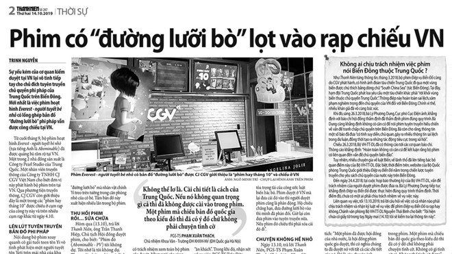 Trong khi đó, ông Hoàng Việt, Ban Nghiên cứu luật Biển và hải đảo của Liên đoàn Luật sư VN, cho rằng cần phải quy trách nhiệm rõ ràng. “Hội đồng duyệt cũng phải có trách nhiệm trong trường hợp này. Rồi cũng đặt vấn đề trách nhiệm Cục Điện ảnh sao lại để trailer có hình ảnh đường lưỡi bò như vậy trên hệ thống quá lâu”, ông Việt nói.
