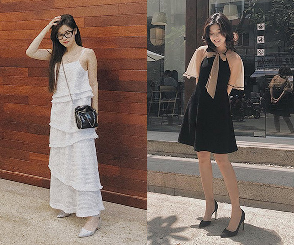 Khổng Tú Quỳnh của thời hiện tại ưa chuộng các kiểu váy điệu đà nhưng mix không quá cầu kỳ.