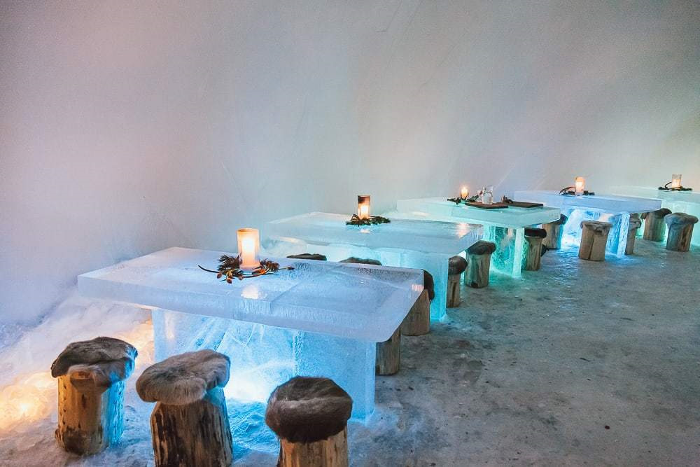 Tiệc băng, Lapland, Phần Lan: Đến Lapland, Gemma Graham đã không bỏ lỡ cơ hội dùng bữa trong nhà hàng băng. Tất nhiên, anh đã phải đeo găng tay, mặc áo khoác trong suốt bữa ăn thay vì thư giãn trong không gian ấm áp của các nhà hàng thông thường. Nhà hàng phục vụ các món ăn truyền thống của vùng cực, như súp cá, thịt tuần lộc hầm...
