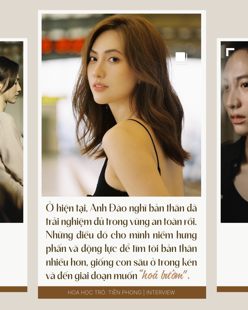 Mọi danh xưng đều là mỹ từ mà khán giả trao cho, nên cảm xúc đầu tiên, Anh Đào thấy rất biết ơn. Nhưng mỹ từ ấy vừa là phần thưởng, cũng vừa là thử thách. Riêng Anh Đào vẫn rất “chấp niệm” mình là diễn viên… trẻ (cười), luôn “on-mode” thử thách mình ở nhiều màu sắc. Nên dù có như thế nào, Anh Đào luôn phải phấn đấu để xứng đáng với tình yêu của khán giả.