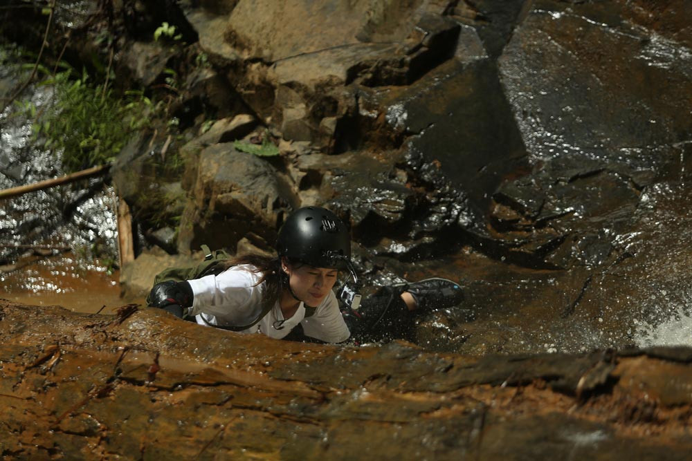 Chia sẻ về quá trình chinh phục thử thách, Ngọc Thanh Tâm cho biết: “Có những lúc mắt không thấy được rõ đường, không thấy dây ở đâu để bám cả. Nhiều lúc tôi phải lấy tay của mình để tựa vào núi. Khi xác định phải bình tĩnh để giải quyết, tôi cố gắng dùng 2 tay giữ chặt dây nhưng nước liên tục đồ vào đầu làm tay trượt ra ngoài, rồi bị té qua té lại. Cuối cùng, tôi phải tưởng tượng mẹ mình đang ở trên đỉnh thác nên bằng mọi giá phải leo lên cho bằng được”.