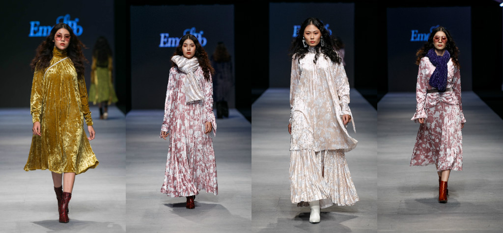 Những trang phục đầu tiên xuất hiện dưới những gam màu tối tượng trưng cho đêm đen trước bình minh, và khi ánh Mặt Trời dần cao lên cũng là lúc các bộ trang phục của Emspo uyển chuyển “nâng tông” lên sắc đỏ, vàng và trắng – dấu hiệu khởi đầu cho một ngày mới.
