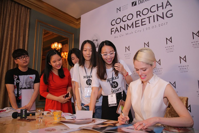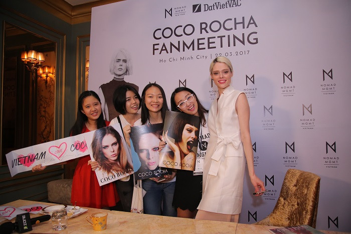 Coco Rocha - siêu mẫu gốc Canada đã chính thức có mặt tại Việt Nam vào hôm qua 21/3. Và sáng hôm nay 22/3, "nữ hoàng tạo dáng" đã có buổi họp fan tại một nhà hàng gần kế bên Nhà thờ Đức Bà, TP.HCM. Chỉ có 20 người hâm mộ đặc biệt được gặp gỡ, giao lưu và chụp ảnh cùng Coco Rocha.