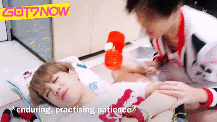 Có em út lầy lội thế này thì các ông anh của GOT7 quá khổ rồi. Muốn nằm nghỉ một chút cũng không yên.