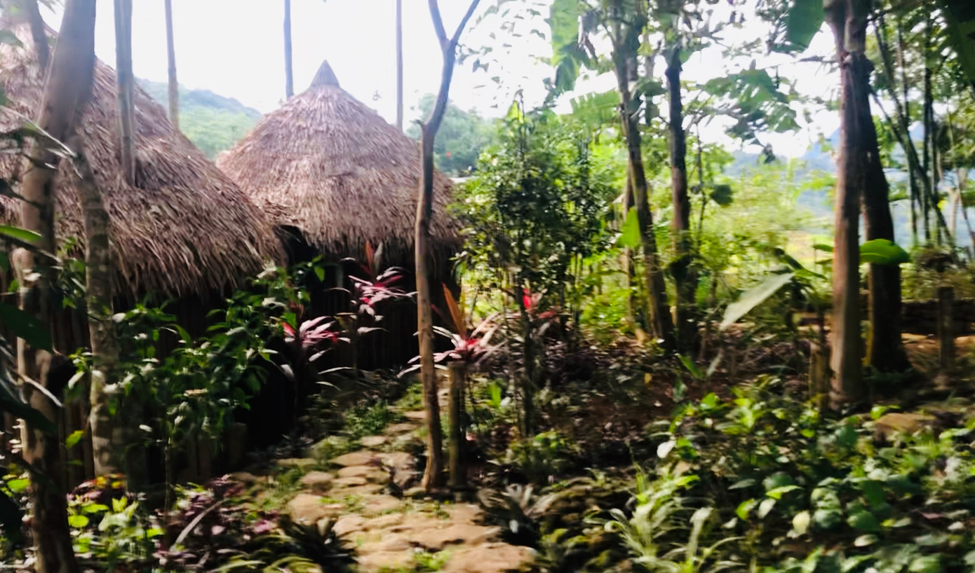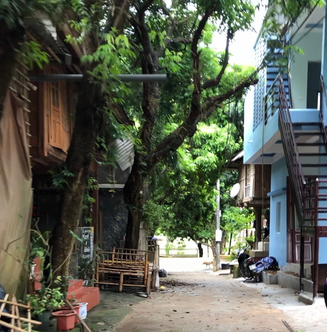 Resort nơi chúng tôi ở được phủ đầy cây xanh và hoa cỏ, phòng ốc được dựng thô sơ bằng vật liệu gỗ tự nhiên của địa phương và được bố trí như đang ẩn nấp trong một khu vườn treo xanh mướt. Các phòng đều sử dụng quạt máy và hoàn toàn không có máy lạnh. Chúng tôi rất thích thú với không gian này. Vì chúng tôi vuợt qua bao nhiêu đoạn đường cheo leo dốc đứng tới đây không phải để nghỉ ngơi trong một căn phòng máy lạnh.