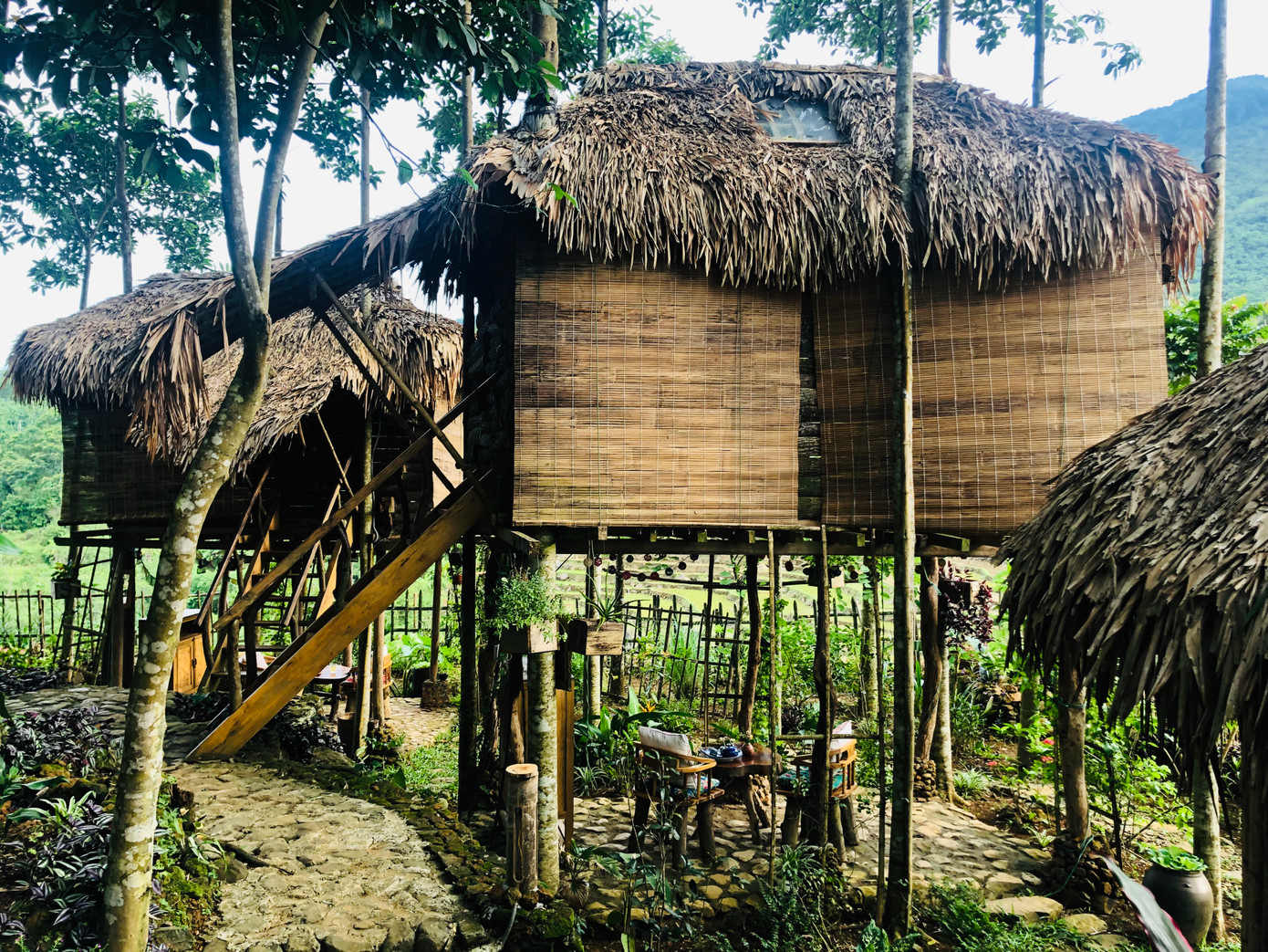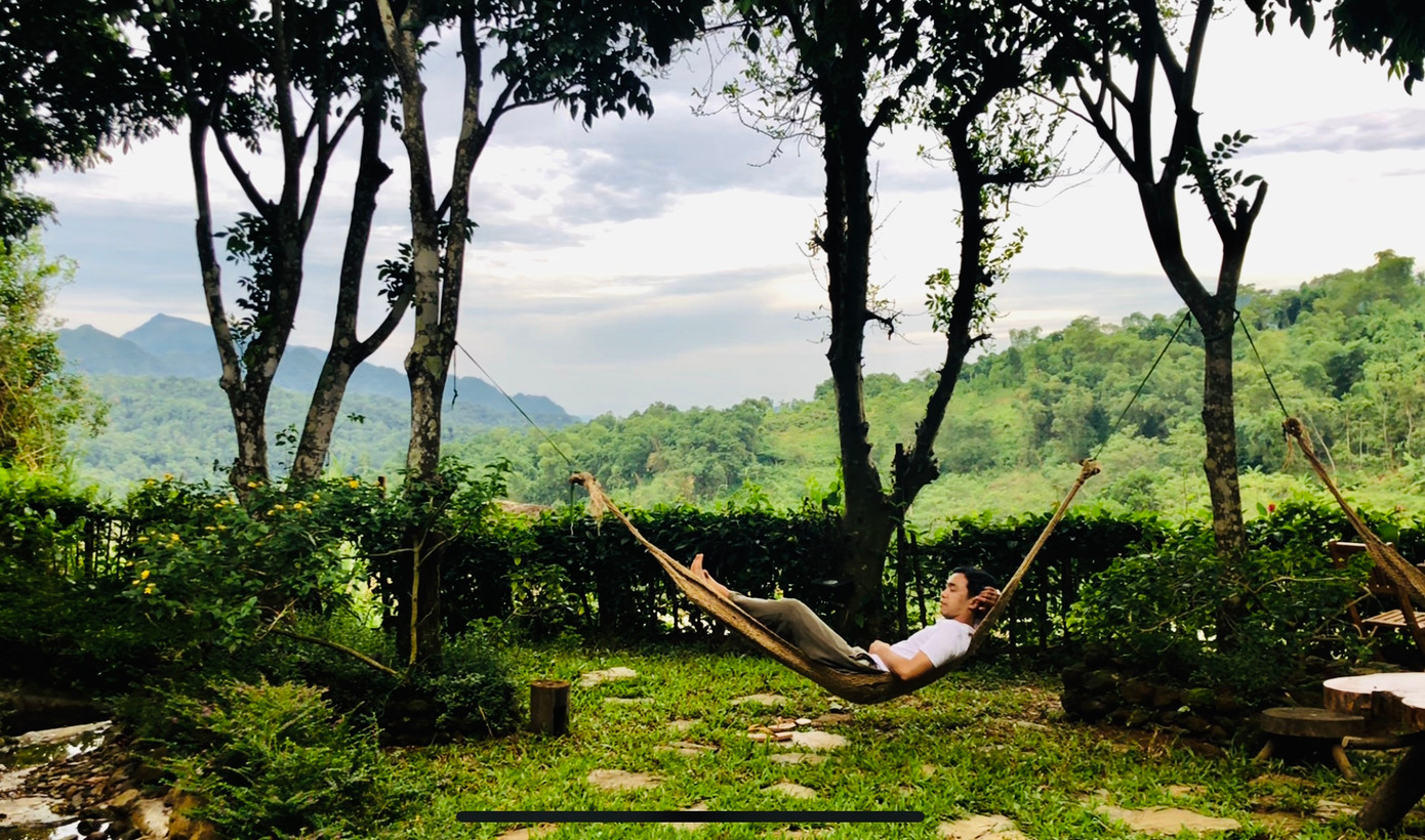 Pù Luông nổi tiếng với Resort Puluong Retreat nằm trên đồi cao, những hình ảnh hồ bơi vô cực, phòng ngủ với balcon nằm lưng chừng đồi để săn mây,… ngập tràn trên internet. Nhưng tôi quyết định chọn nơi ngược lại, đó là Puluong Tree House Resort, nằm dưới chân đồi nhìn lên, để có thể quan sát cả ngọn đồi.