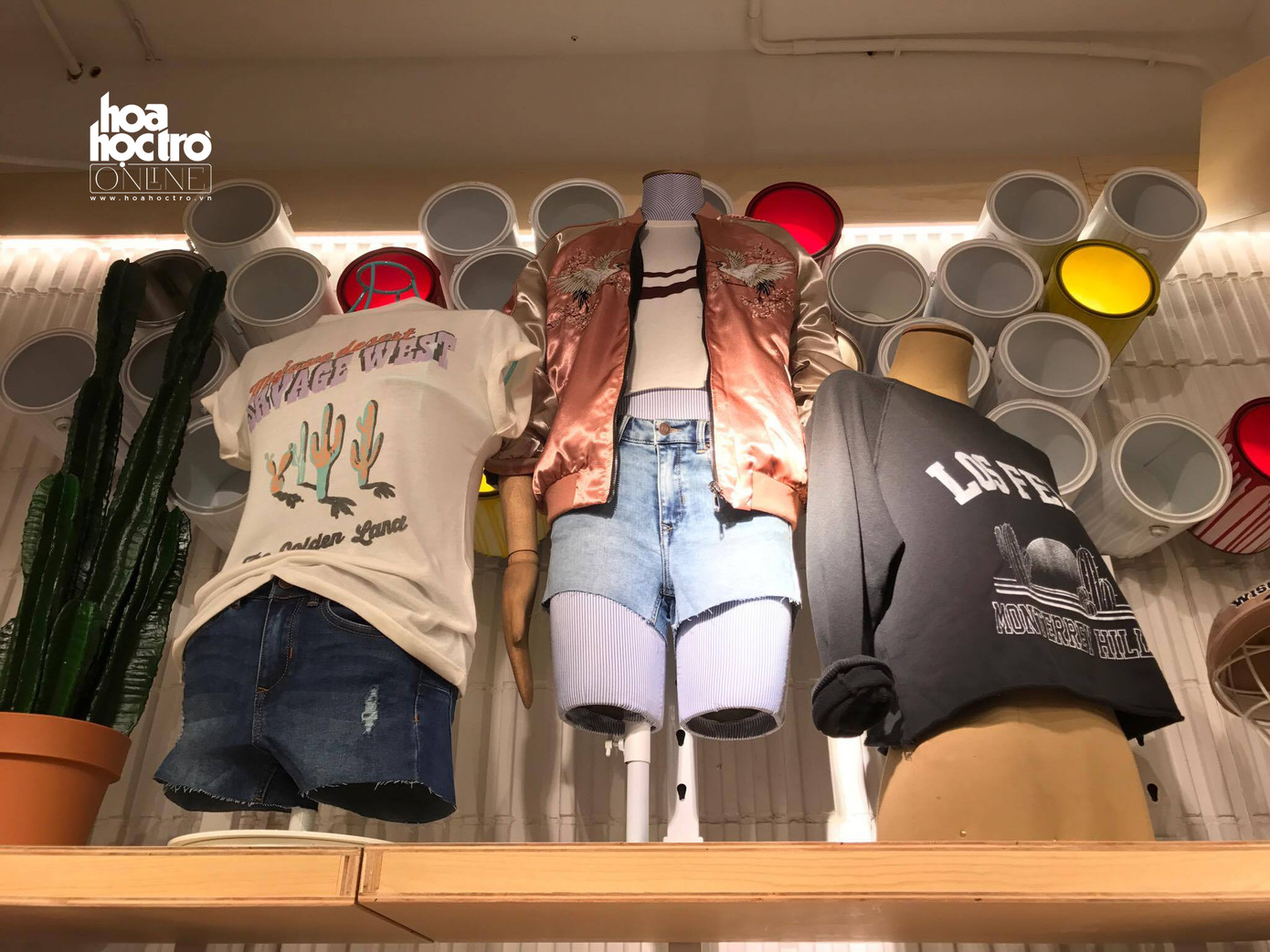 Phong cách cửa hàng rất trẻ trung, tươi sáng chia làm 2 khu vực đồ dành cho nam và đồ dành cho nữ. Ngoài ra còn có khu vực sạc điện thoại cũng như khu thử đồ rộng rãi.