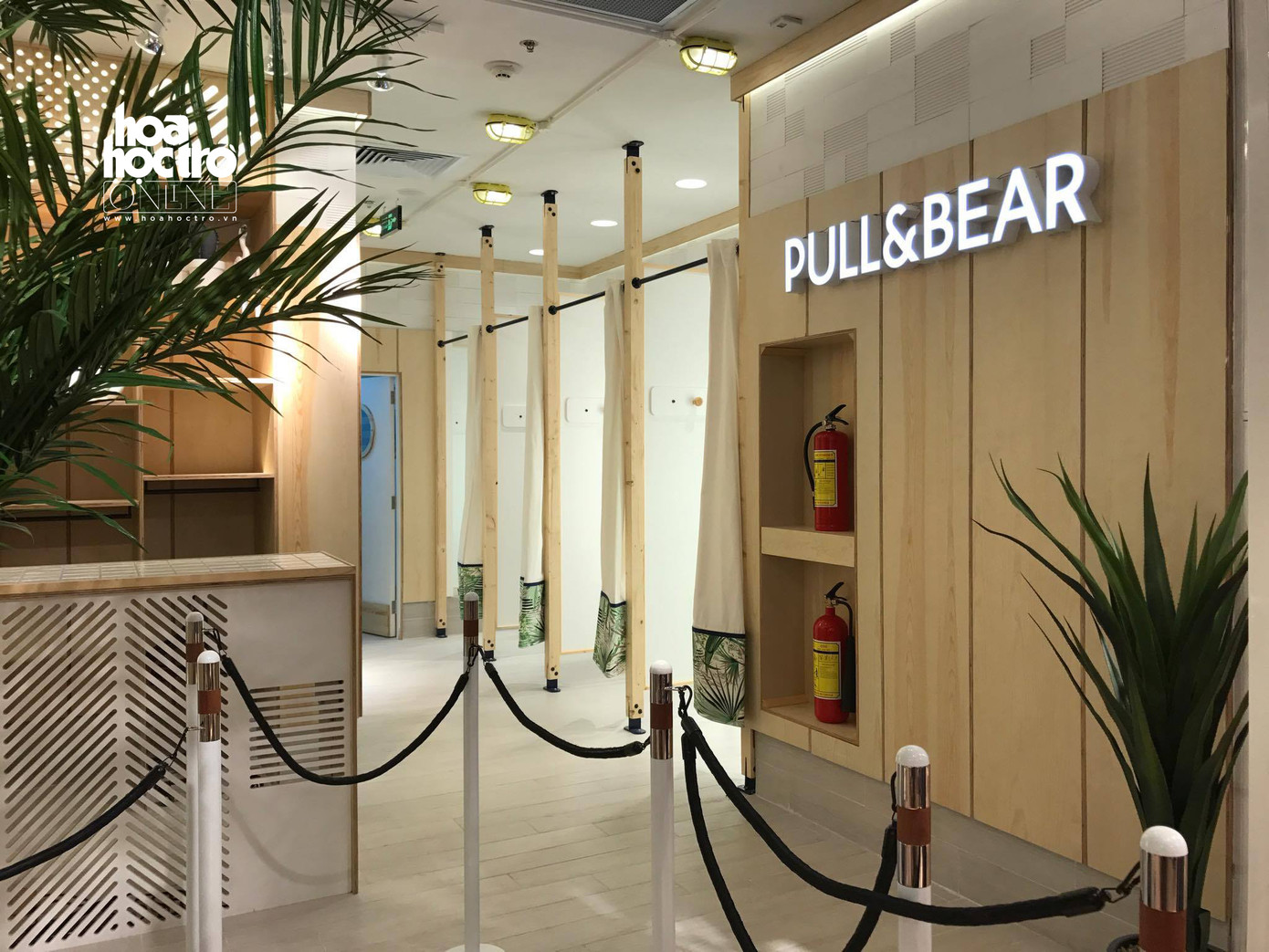 Cửa hàng được thiết kế khá đẹp mắt, thoáng đãng với diện tích 600 m², nằm ở tầng 2 TTTM Vincom Đồng Khởi. Nơi đây sẽ bày bán các mẫu thời trang Pull&Bear mới nhất dành cho giới trẻ. Không gian bên trong cửa hàng còn được tạo điểm nhất bằng những cột vải, tôn thêm phong cách phóng khoáng vốn có của thương hiệu. Sàn được lát đá cẩm thạch trắng, hoa văn vàng - đen, kết hợp với sàn gỗ tổng hợp.