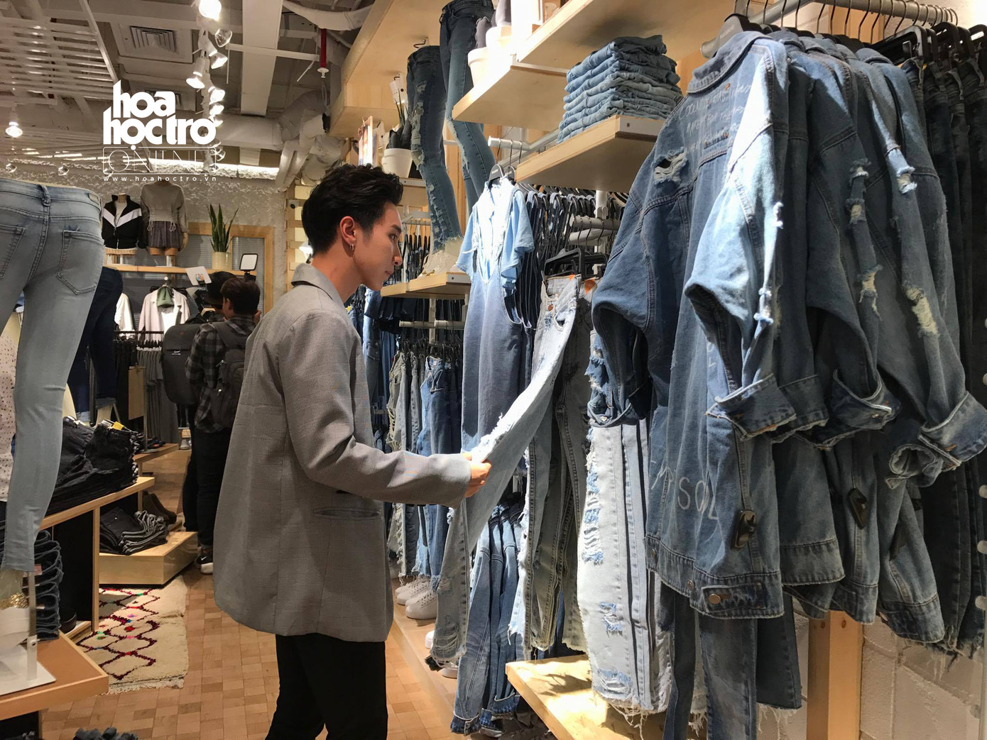 Key (Monstar) đang lựa chọn những món đồ ưng ý tại khu vực đồ denim cho nam.