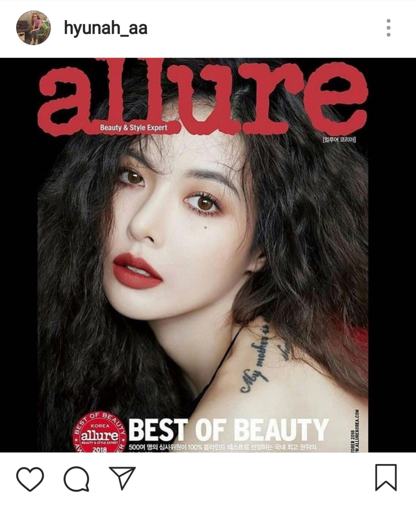 Mới đây nhất, Hyuna đã có cập nhật đầu tiên trên Instagram, từ sau vụ ồn ào kia nổ ra. Đáng nói hơn nữa, Hyuna chẳng hề viết một lời mà chỉ lặng lẽ đăng tải hai tấm ảnh cô chụp cho tạp chí, vẫn xinh đẹp sắc sảo như mọi khi. Vì Hyuna chẳng nói gì, nên khán giả chỉ biết suy luận rằng chắc hẳn Hyuna đang muốn khẳng định dù Cube có bày đủ chiêu trò, thì cô vẫn chẳng quan tâm, vẫn làm việc như bình thường, vẫn rất ổn.