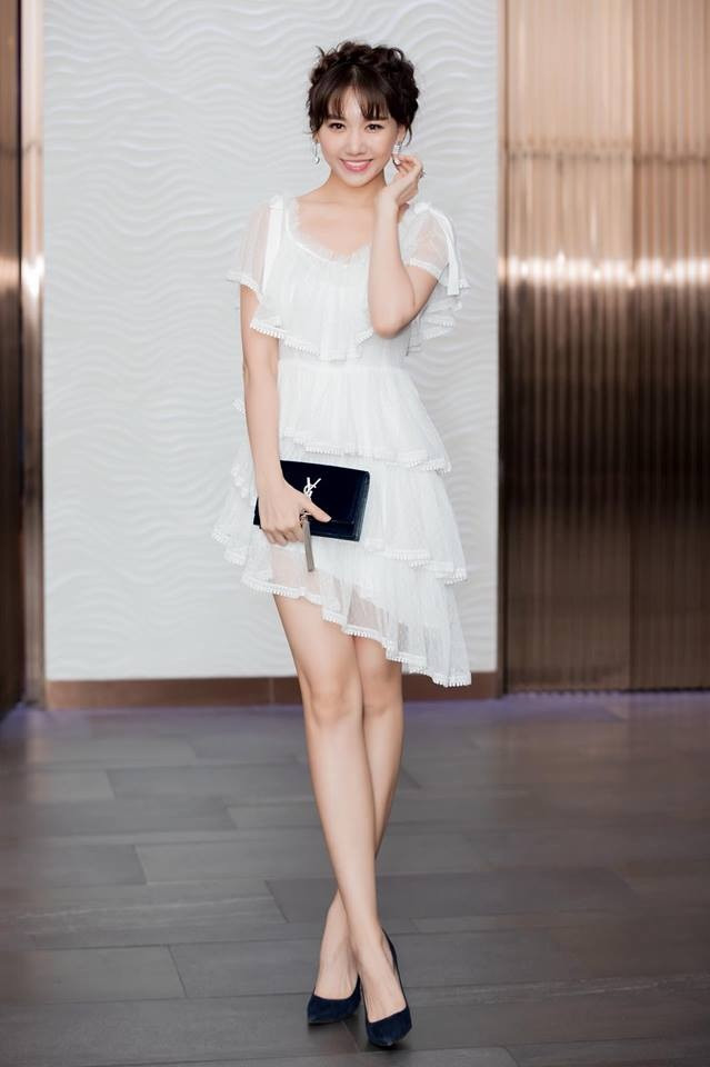 Với vẻ đẹp tinh khôi, dịu dàng, Hari Won trông càng thu hút khi diện các kiểu váy cocktail màu trắng.