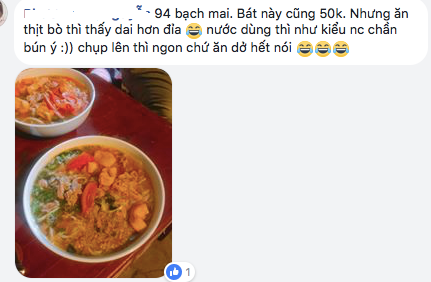 Mới đây, trong các nhóm hội kín về ẩm thực trên mạng xã hội, các thành viên đang chia sẻ rất nhiều ý kiến về dịch vụ ăn uống ngày Tết: vừa đắt đỏ, vừa không ngon miệng. Trong đó, một thành viên sau khi đến ăn bún bò tại một quán ăn ở Bạch Mai (Hà Nội) đã có vài lời chia sẻ như sau: “Bát này cũng 50.000 đồng nhưng thịt bò thì thấy dai hơn đỉa, nước dùng thì như kiểu nước chần bún. Chụp ảnh lên thì ngon chứ ăn dở hết nói.”