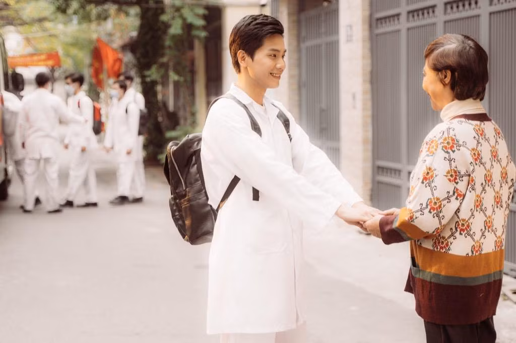 Cuối MV, Quân A.P không quên gửi lời tri ân tới những bậc phụ huynh của các bác sĩ ngày đêm đang chiến đấu ở tuyến đầu giúp góp phần xoá tan đại dịch. Tham gia MV, Quân A.P thủ vai người con khi trưởng thành. Á hậu Tú Anh đảm nhận nhân vật người mẹ lúc trẻ.