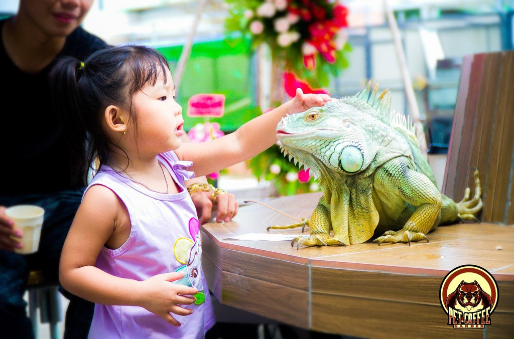Nhiều gia đình đưa con đến đây, các bé tỏ ra thích thú khi được chơi đùa cùng chó mèo và vuốt ve các loài bò sát. Thực khách có thể thoải mái mang vật nuôi của mình đến giao lưu. "Quán cà phê này nuôi rất nhiều loại động vật, đôi lúc có mùi khó chịu là điều không thể tránh khỏi, mình nghĩ đó là điểm trừ duy nhất ở đây", Thế Vĩ (quận 9) chia sẻ.