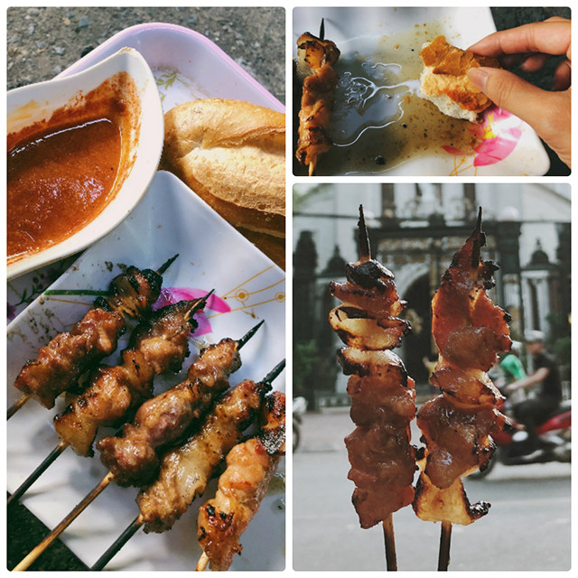 Thịt xiên nướng siêu rẻ nằm đối diện nhà thờ Hàm Long.
