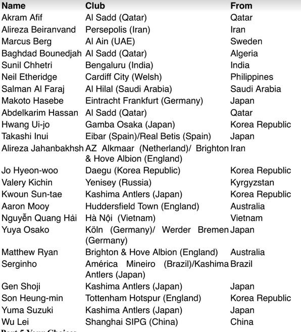 Ở giải Cầu thủ xuất sắc nhất châu Á, Quang Hải sẽ phải cạnh tranh với rất nhiều ngôi sao lớn của bóng đá thế giới như thủ thành Neil Etheridge (Philippines) hay nhiều cầu thủ từng thi đấu ở World Cup 2018 như Hansebe, Inui (Nhật Bản), Aaron Mooy (Australia), Jahanbakhsh (Iran).
