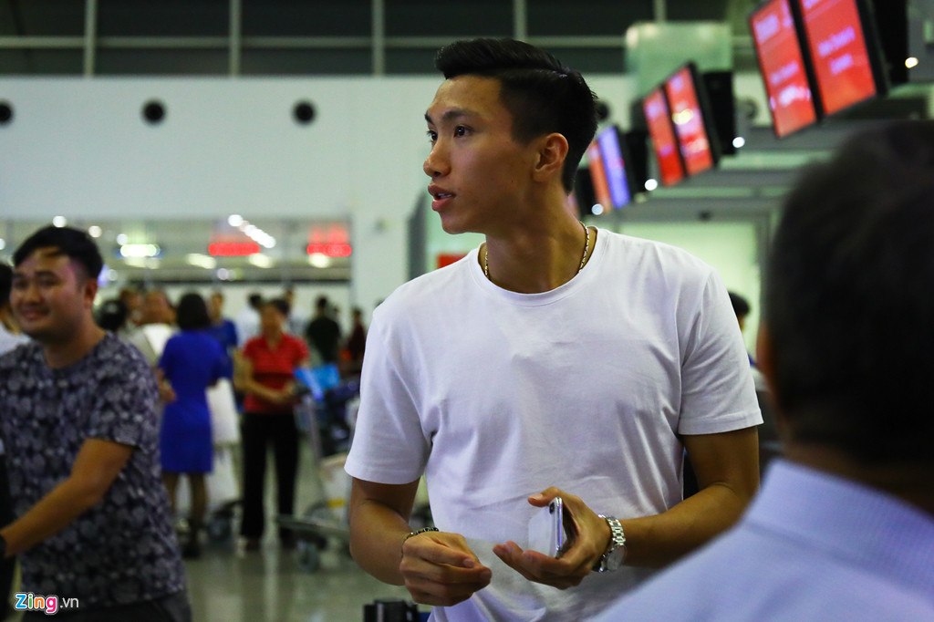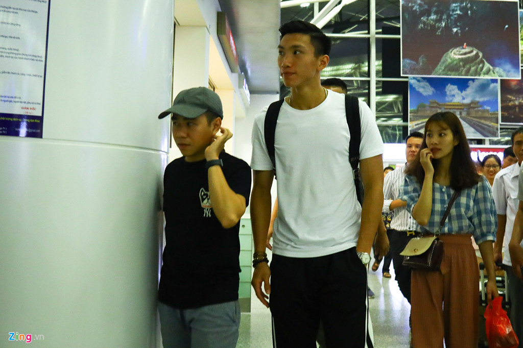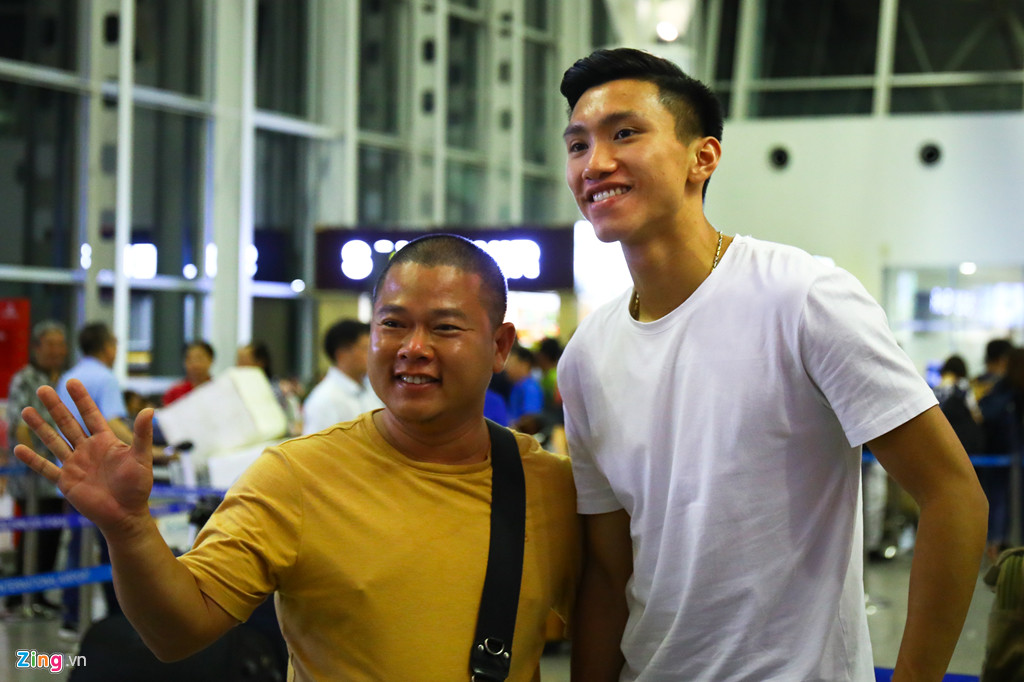 Nhiều người hâm mộ nhận ra Đoàn Văn Hậu và xin chụp hình cùng anh tại sân bay.