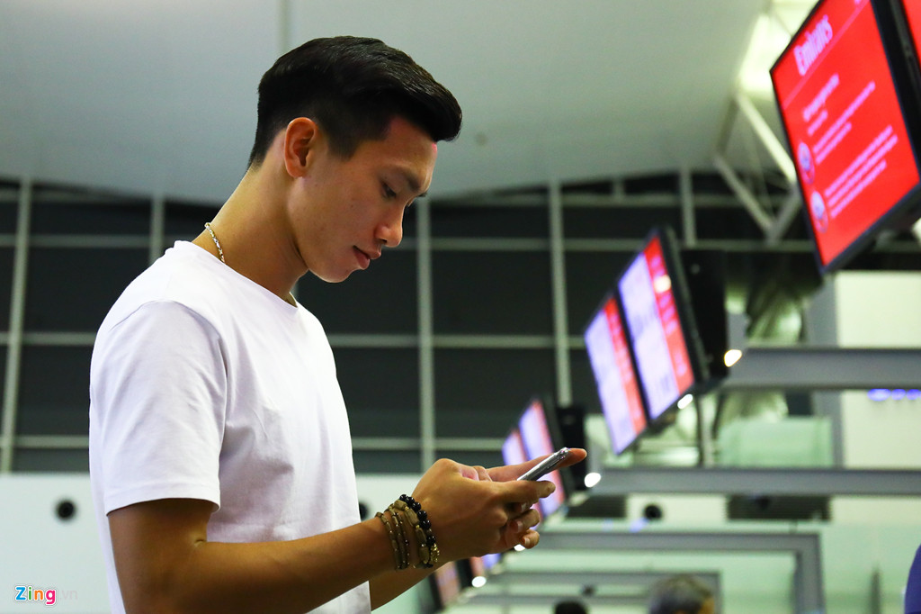Anh có mặt tại sân bay Nội Bài (Hà Nội) lúc hơn 23h ngày 16/9. Hậu vệ của CLB Hà Nội phải chuyển tiếp một lần trước khi tới Amsterdam (Hà Lan). Hành trình dự kiến dài 17 tiếng, Văn Hậu sẽ có mặt ở Hà Lan lúc 13h15, tức 18h15 giờ Việt Nam ngày 17/9.