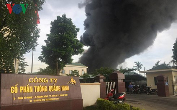 Trước đó, khoảng 16h ngày 21/6, tại Công ty cổ phần Thông Quảng Ninh (phường Phương Đông, TP Uông Bí, Quảng Ninh) xuất hiện đám cháy tại dây chuyền 4 (khu nhà xưởng chế biến nhựa).