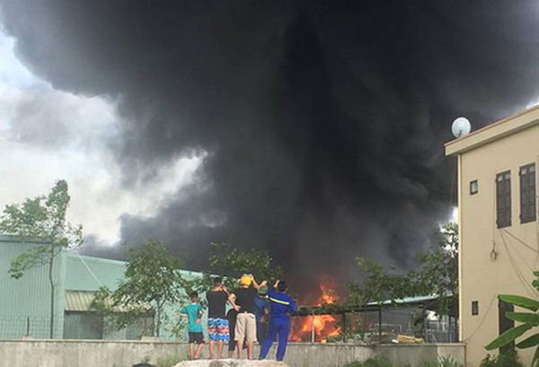 Đám cháy bắt nguồn từ kho chứa nhựa thông rồi bùng lên dữ dội, ngọn lửa kèm theo cột khói đen cao hàng chục mét cuồn cuộn bốc lên nghi ngút.
