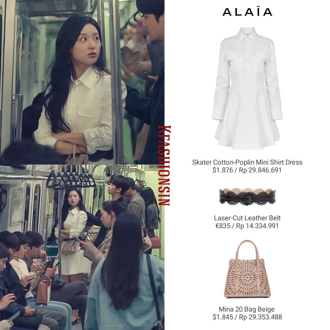 Hae In thoạt nhìn rất giản dị với váy trắng kín đáo khi thử đi tàu điện cùng Hyun Woo, nhưng riêng mẫu váy đã có giá 47 triệu đồng, cầm trên tay túi xách giá 50 triệu đồng.