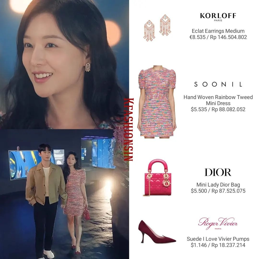Khi nhận lời cầu hôn của Hyun Woo, có lẽ đã đoán trước sẽ có sự kiện đặc biệt nên Hae In càng thêm chăm chút diện mạo. Váy hồng giá 140 triệu, túi xách Dior 150 triệu, đôi giày cao gót cũng 30 triệu.