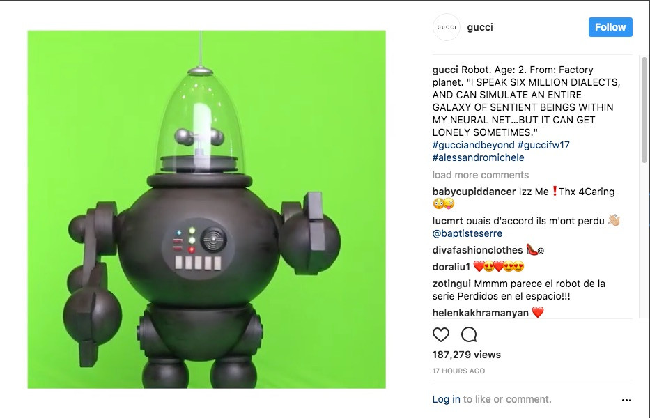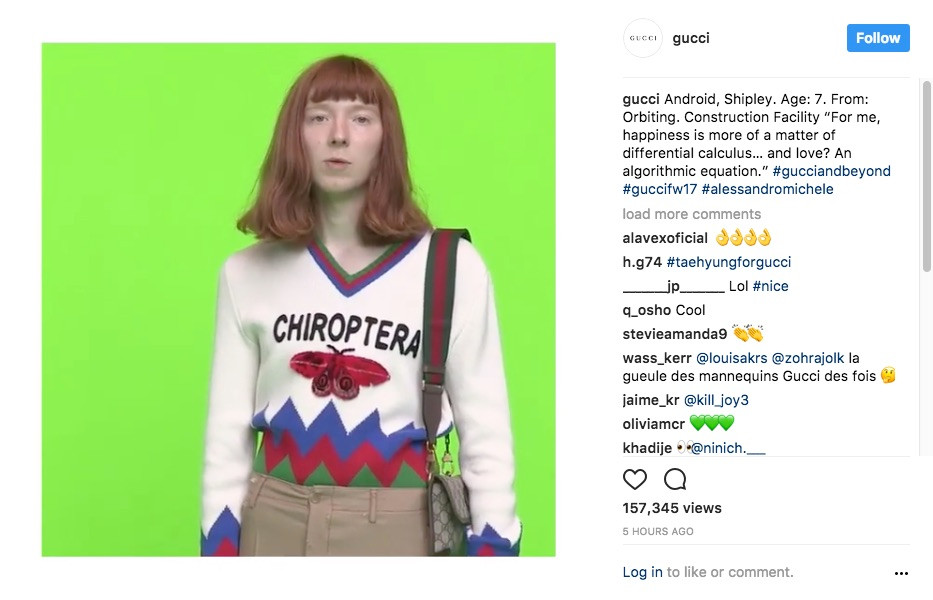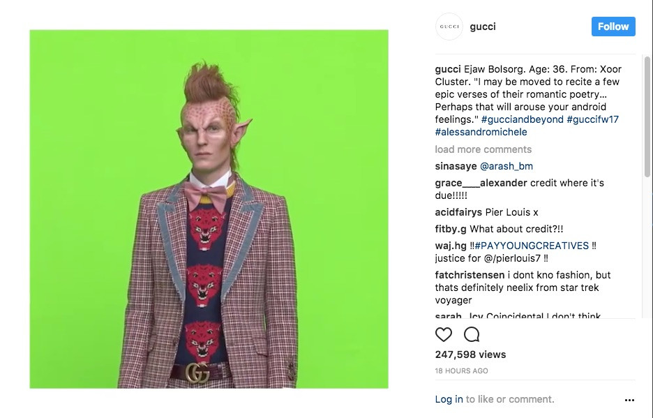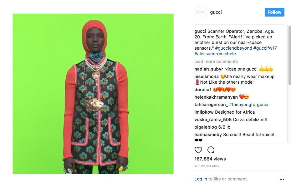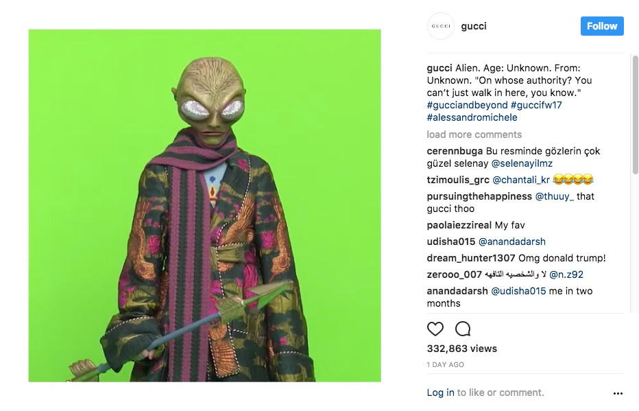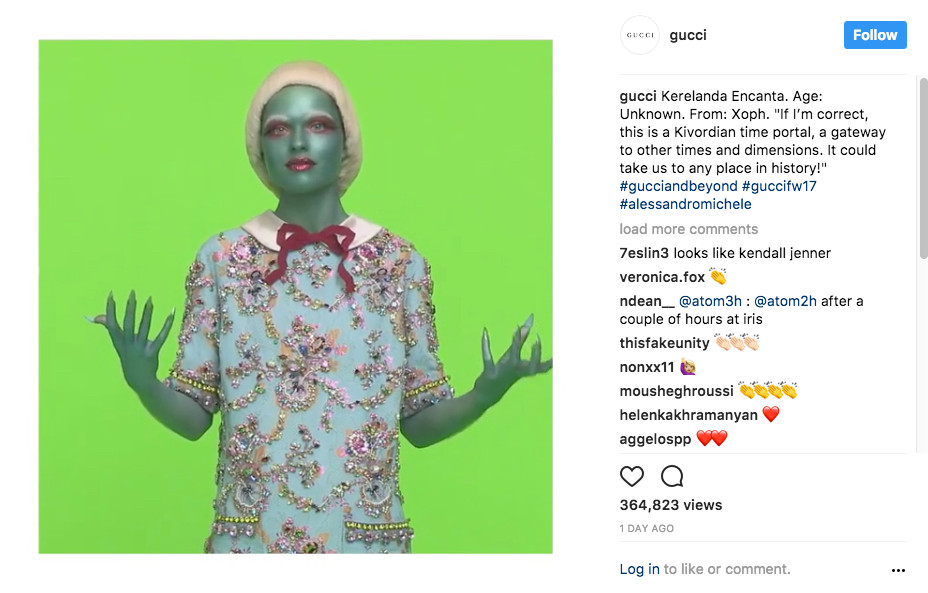 Đây là một phần trong chiến dịch mới của nhà thiết kế Alessandro Michele - Giám đốc của Gucci. Dường như thông điệp của nhà thiết kế Alessandro Michele cho bộ sưu tập mùa Thu của ông là những lời giải thích về tương lai, vì thế nên Michele mới có màn casting người ngoài Trái Đất đầy ấn tượng này. Đây chỉ là phỏng đoán của giới thời trang về những gì Michele đang làm cho Gucci, chúng ta sẽ cùng chờ xem sao. Dù gì thì những người mẫu này cũng tới trong hòa bình, không có gì đáng lo ngại cả!