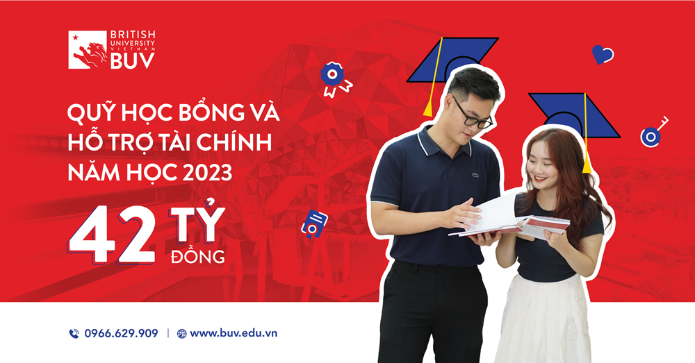 Quý phụ huynh và học sinh quan tâm xem thêm thông tin về Quỹ Học bổng BUV năm 2023 tại https://scholarship.buv.edu.vn/, đăng ký tham gia sự kiện học bổng tại https://scholarshipevent.buv.edu.vn/ hoặc liên hệ fanpage British University Vietnam, Hotline 0966 629 909.