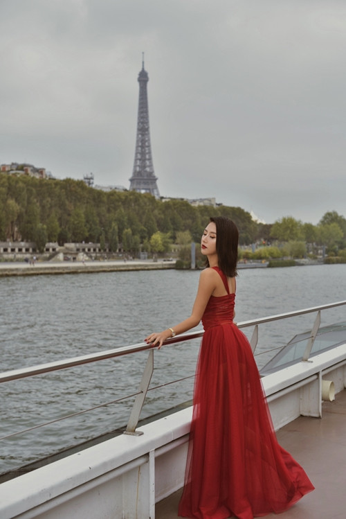 Quỳnh Anh Shyn khoe vóc dáng và thần thái sang chảnh trước khung cảnh ở du thuyền đi trên sông Seine.