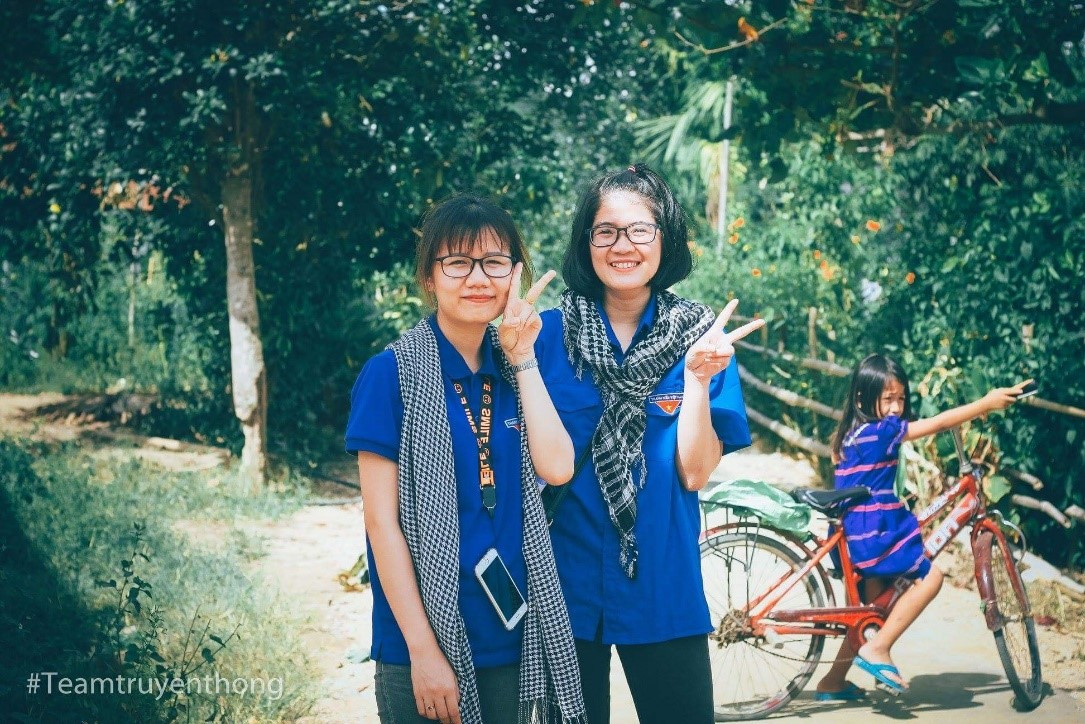 Lan Anh (bên phải) - Phó bí thư năng động ĐH Luật - Huế, người đứng sau thành công của phim ngắn.