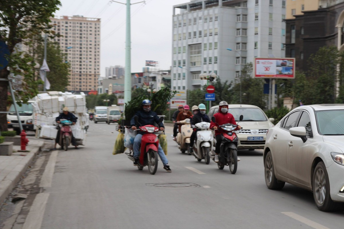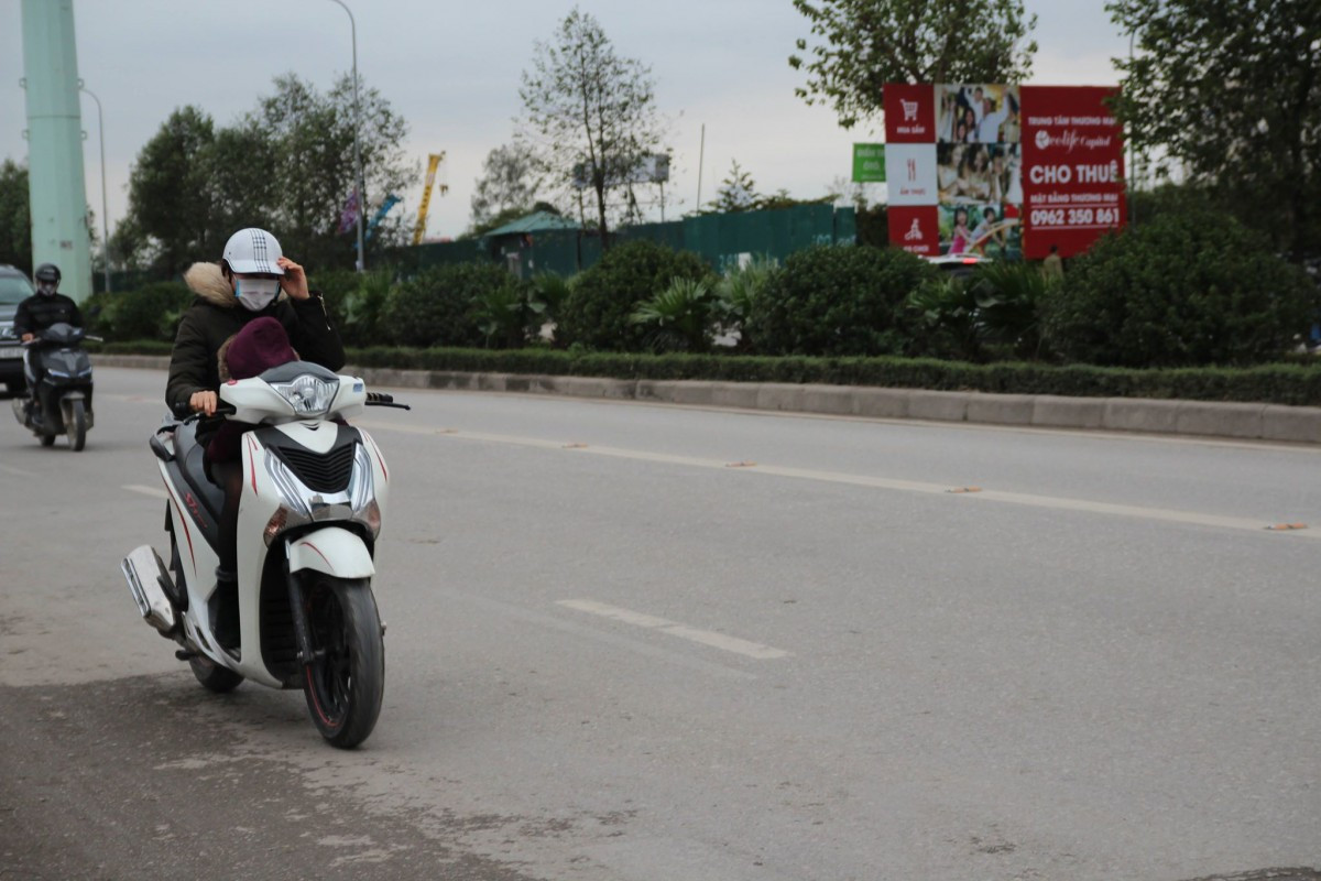 Cái rét càng rõ hơn khi xe chạy qua các khu vực gần toà nhà cao tầng, hút gió lớn. Nhiều người không dám di chuyển nhanh.