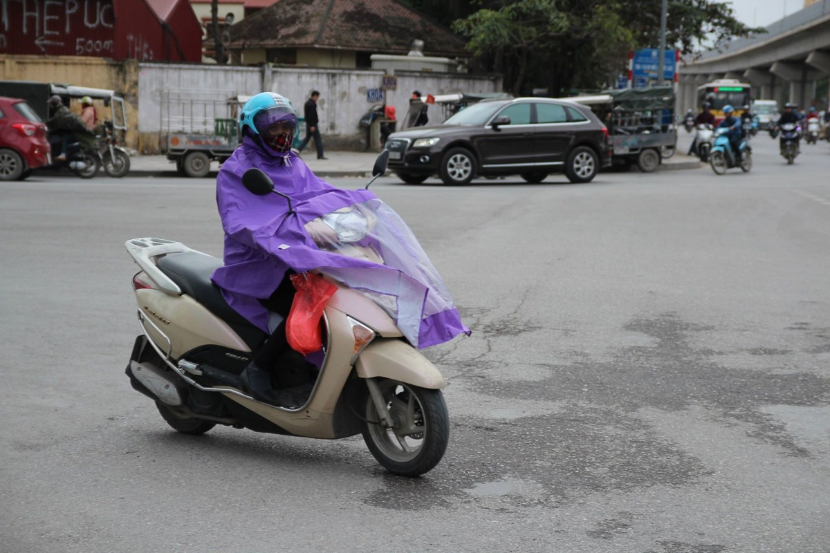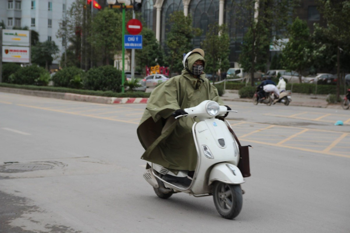 Tại Hà Nội từ đêm 8 - 14/1 trời rét đậm, có nơi rét hại với nhiệt độ thấp nhất phổ biến từ 10 - 12 độ. Dù trời không mưa nhưng nhiều người vẫn mặc áo mưa để vơi bớt giá rét.
