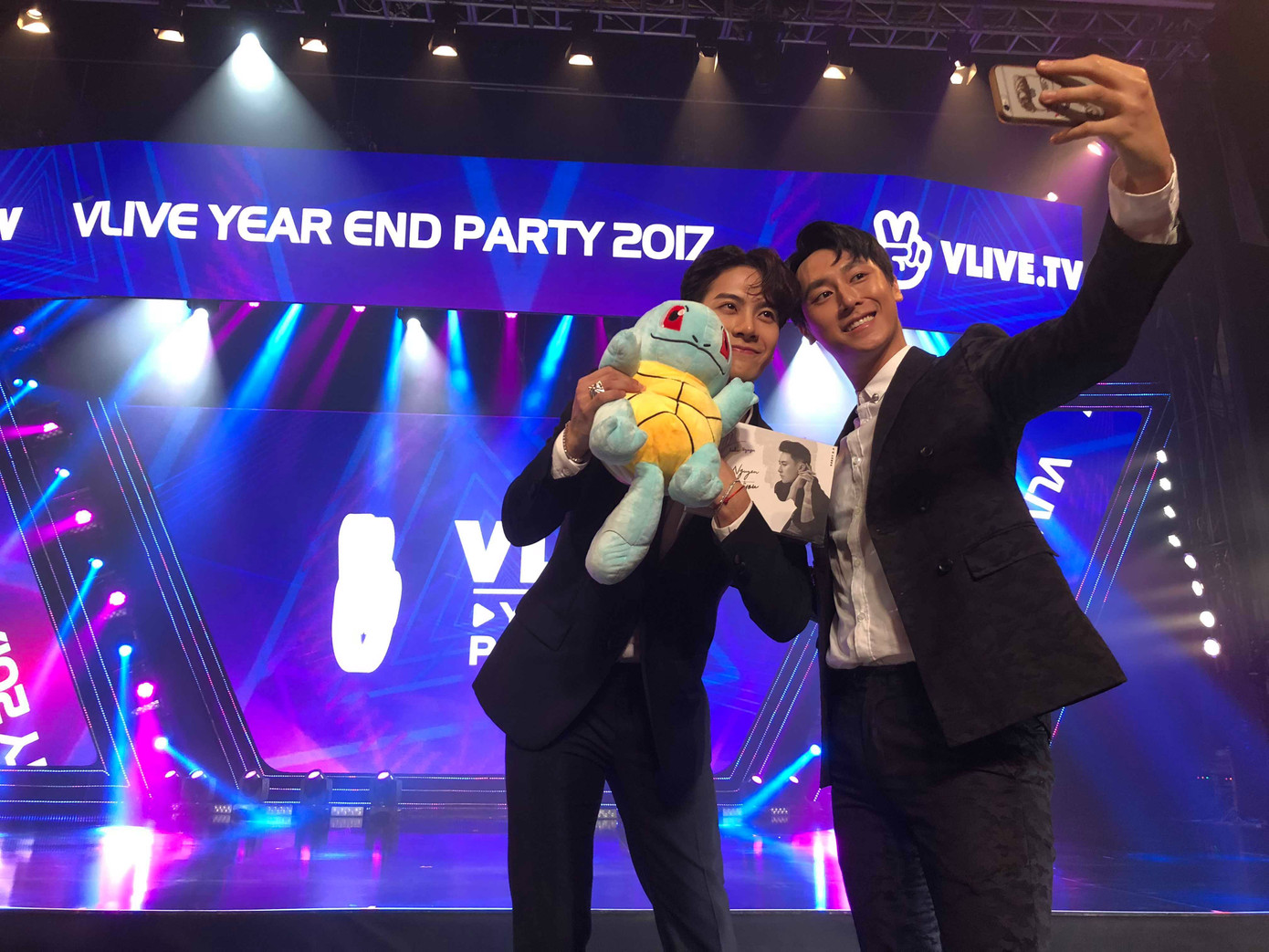 Không chỉ selfie thân thiết, giọng ca Sẽ về với nhau còn gửi tặng thành viên GOT7 một chiếc EP From me to you mới ra mắt của mình có chữ ký cùng thú nhồi bông rùa Squirtle - nhân vật trong Pokémon mà Jackson rất yêu thích. Chú Rùa này cũng thường được các fan hâm mộ tặng cho Jackson mỗi lần gặp mặt hay trong các sự kiện fansign. Khi được Rocker tặng quà, Jackson khá bất ngờ và tỏ ra thích thú vì được tặng quà đúng ý. Anh chàng nở nụ cười tươi và luôn miệng nói lời cảm ơn đến Rocker. “Nam thần ngây thơ” cũng không quên gửi lời thăm hỏi sức khỏe đến Jackson vì biết được anh đang bị đau lưng vì lịch trình dày đặc và tập luyện căng thẳng.