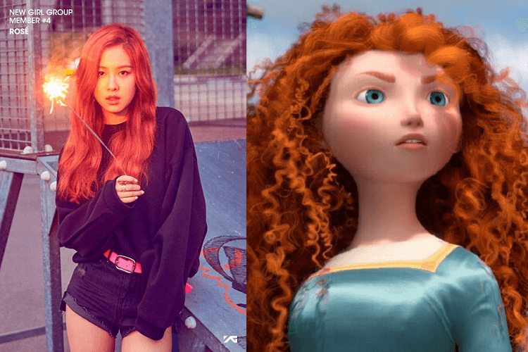 Tóc cam trong "Playing with fire" của Rosé lại khiến cô nàng trông giống Merida (Brave).