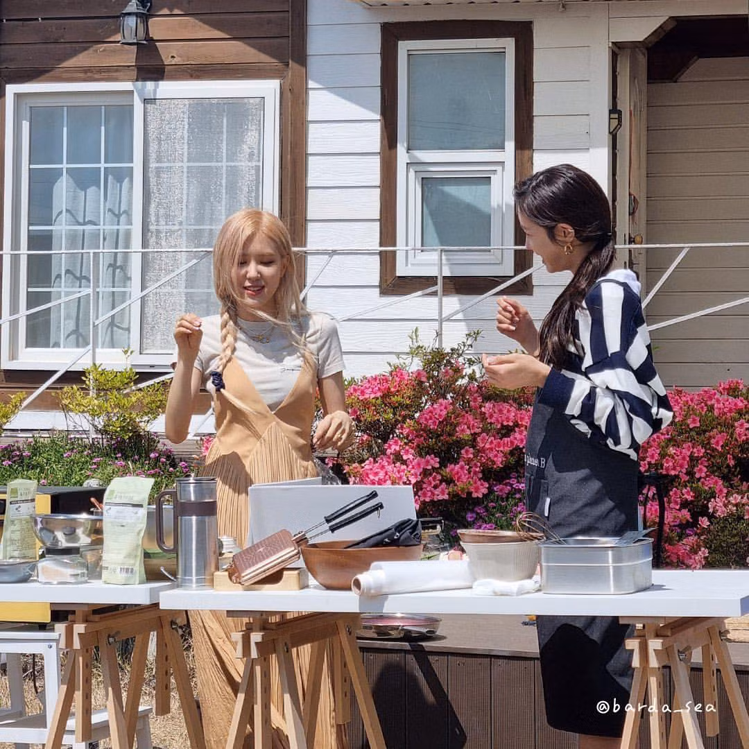 Vì dàn host có nhiệm vụ chuẩn bị đồ ăn nên Onew (SHINee) xung phong làm món bánh brownie dâu tây và còn đích thân đút cho Rosé. Khoảnh khắc này được netizen khen đẹp như phim tình cảm lãng mạn khi mái tóc Rosé bay bay trong gió.