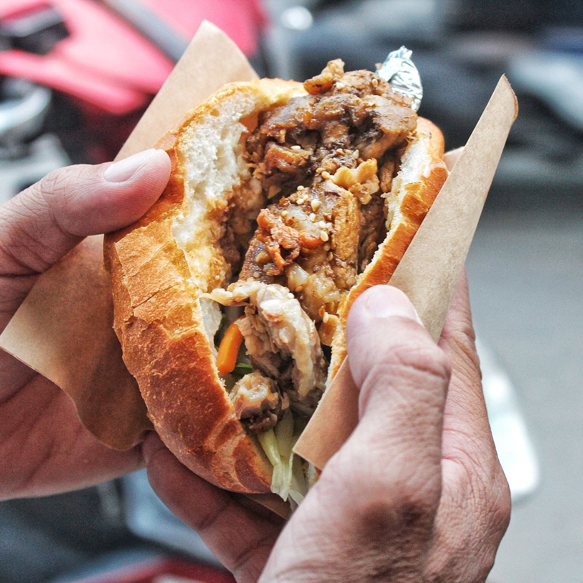 Không phải loại bánh mì Kebap bạn thường ăn đâu nha! Ruột của em bánh mì này có nguyên miếng sườn cây ướp sả được hầm mềm, nằm kẹp giữa lớp rau dưa, rưới thêm nước sốt đặc trưng lên mặt nhìn rất hấp dẫn. Chỉ cần cần cắn một miếng, bạn sẽ cảm nhận được ngay vị đậm đà của miếng sườn mềm, quyện với vị béo béo của bơ, vị chua ngọt của nước sốt đó. Lưu ý nè, nếu không muốn tạm biệt răng vì cắn trúng phần xương thì bạn có thể nhờ nhân viên rút xương ra, nướng sơ bánh mì cho thêm giòn rụm trước khi măm nhé!