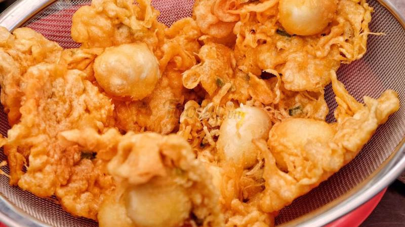 Thêm một lựa chọn nữa cho bạn, đó là món trứng cút “tắm trắng”. Nghe tên gọi lạ lạ vậy thôi chứ thật ra là nhúng trứng cút đã luộc chín, “lăn” vào thau bột mì, bột năng rồi đem chiên giòn lên. Rưới một lớp nước sốt me chua chua, tương cớt cay cay lên mặt là có thể măm được rồi đó!